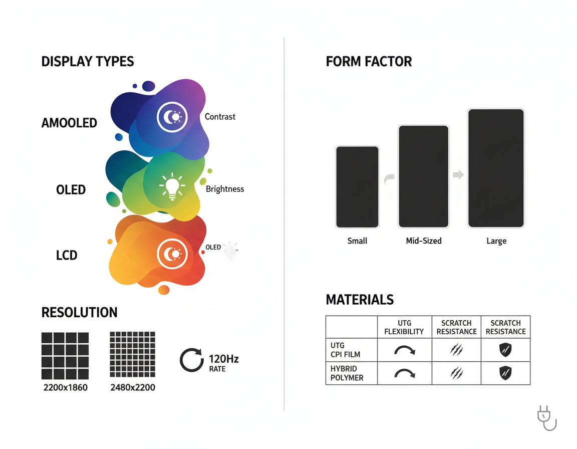se plient plus facilement et résistent à une manipulation plus rude mais montrent plus rapidement des signes d’usure avec des plis visibles. Vous verrez l’UTG dans des modèles haut de gamme visant une sensation proche du verre, tandis que les substrats polymères sont souvent utilisés dans des designs robustes privilégiant la flexibilité plutôt que la finesse. Quoi qu’il en soit, les deux matériaux reposent fortement sur la science des matériaux et la couches à performer sous stress.