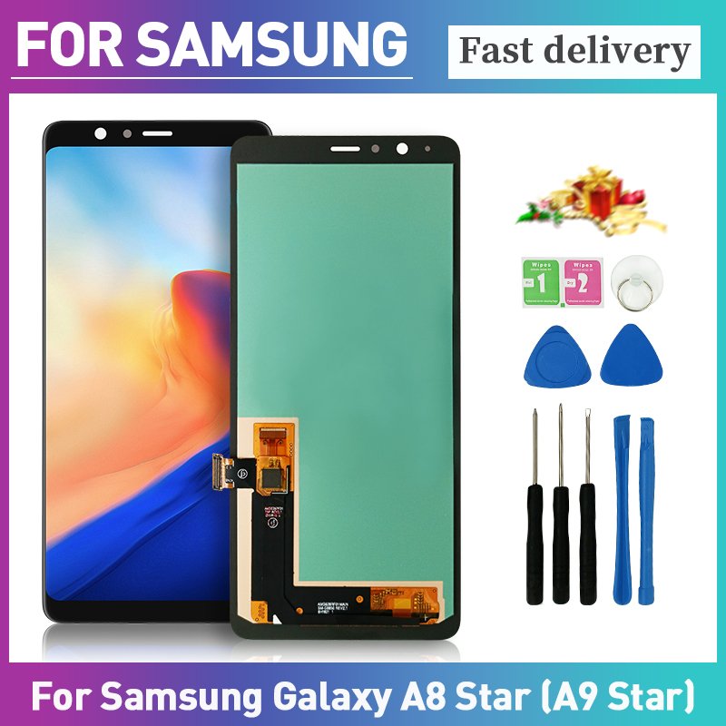 Tela de substituição premium para Samsung Galaxy A8 Star (A9 Star). Conjunto de LCD + digitizador com exibição brilhante e toque responsivo. Ideal para oficinas de reparação e pedidos em massa em Portugal e Europa.